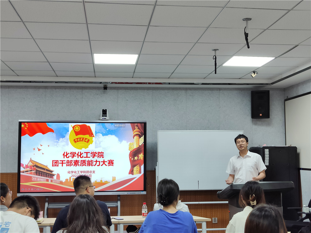 Beat365官网团总支全面部署、精心设计、扎实推进,围绕“喜迎二十大、永远跟党走、奋进新征程”主题,开展主题教育实践活动,5月6日,Beat365官网在4201室举办化学化工学院团干部素质能力大赛。出席本次比赛的有:校团委组宣传部部长沙薇老师,Beat365官网团总支书记成沛锐老师,教育学院邹珊老师,数学与统计学院马勇老师,Beat365官网学生党员、学生团干,本次比赛由学生党员工作站副站长李念晨主持。