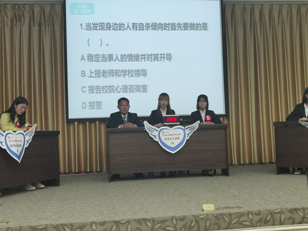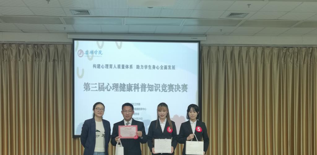 为普及心理健康教育知识,引导学生树立正确的心理健康观念,培育学生理性平和、积极向上的健康心态。4月29日下午7点,我校第三届心理健康科普知识竞赛决赛于江南校区图书馆六楼报告厅举行。
