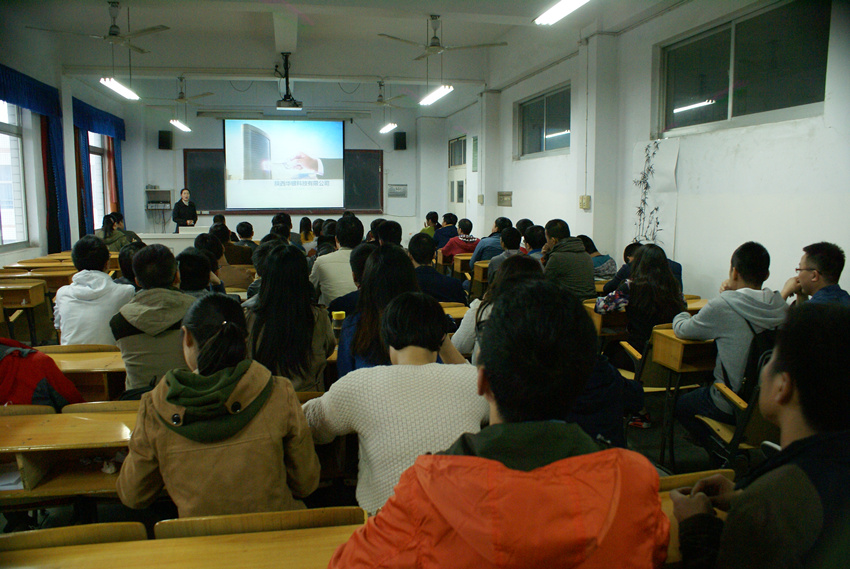接下来,陕西汉阴华能科技有限公司、陕西华银科技有限公司为同学们作了精彩的宣讲,分别介绍了公司的基本概况和目前发展形势,用朴实真诚的语言表达了对行业发展的期许及对技术人才的渴求,热情欢迎化学化工系的同学们能加入到这个新的家庭来,共同实现个人以及社会的价值和理想。现场互动积极,的气氛轻松活泼。
