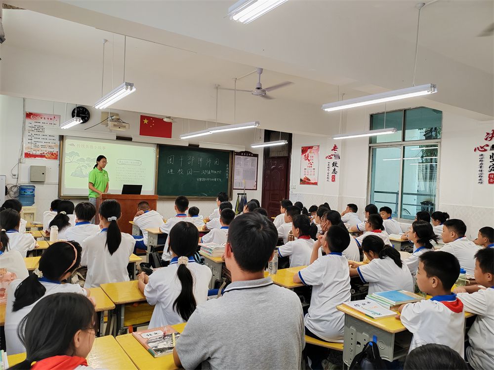 杨旭彤以“讲述红色故事,争做红色传人”为主题,从革命故事、革命英雄、革命圣地、革命成果等四个方面开展微团课。在宣讲中穿插开展趣味知识问答活动,进一步提高学生的参与度,引导他们树立正确的人生观和价值观,将红色信仰的种子播撒在中学生的心中。