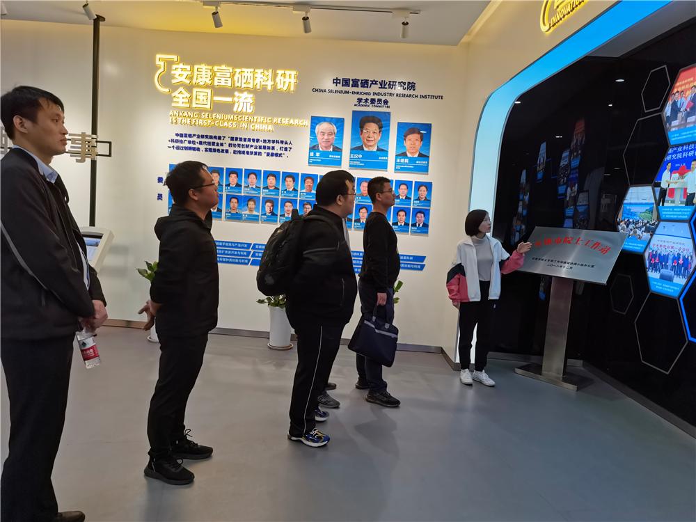 在研究院相关负责人的陪同下,教师首先参观了富硒产业研究院的展览区,了解安康富硒产业的发展历程,富硒产业研究院的组织构架和研发团队,以及部分具有代表性的富硒产品。接着,参观了富硒产业研究院的实验中心。农业农村部富硒产品开发与质量控制重点实验室主任、安康市富硒产品研发中心副主任唐德剑与Beat365官网教师展开座谈交流。希望科研工作者根据个人的研究发展,对富硒展业发展谈了自己的想法,结合个人科研方向找到了与硒产业发展的契合点,为安康的硒产业发展贡献自己的力量。