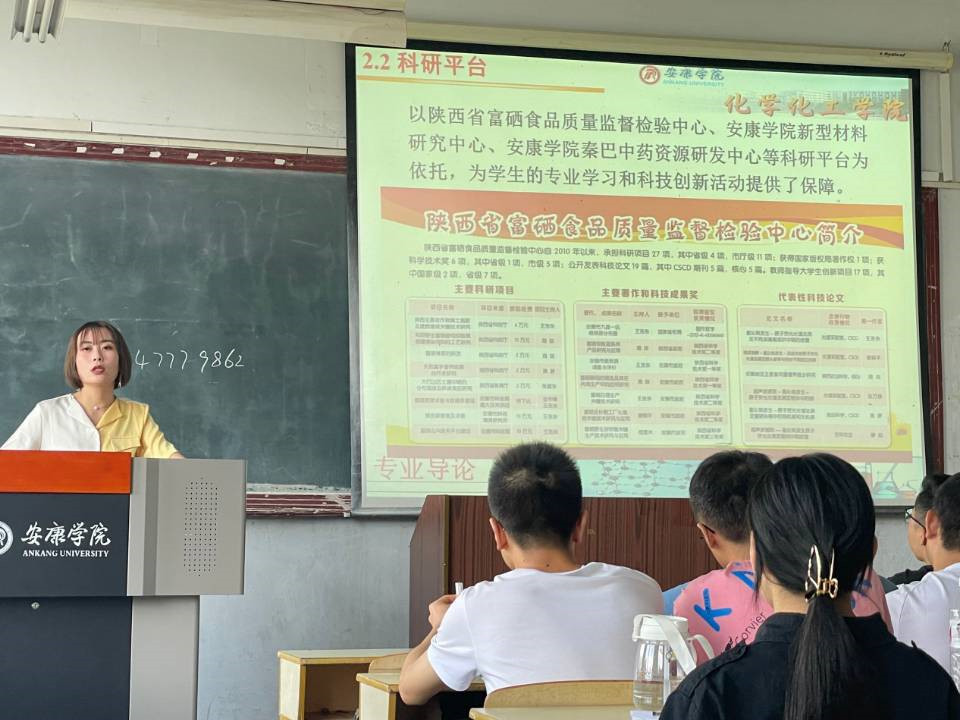黄婷副院长首先给同学们介绍了应用化学专业的课程设置,Beat365官网的科研平台和第二课堂设置情况。介绍了自己所从事的科研方向和安康富硒发展状况。勉励大家踏实学习,积极参与科研社团以及老师的科研项目,全方位提升自己的能力。