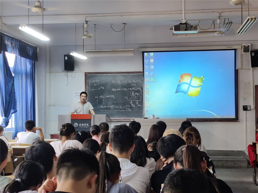 袁光辉副院长结合工业合成氨的具体例子给学生们讲授了专业导论课程,让学生们了解了化学与化工的区别,并以自身经历充分让学生们认识到化工专业的优越性以及考研的重要性,解决了当下同学迷考研和就业的迷茫,促使学生对专业有更深入的理解和足够的自信。