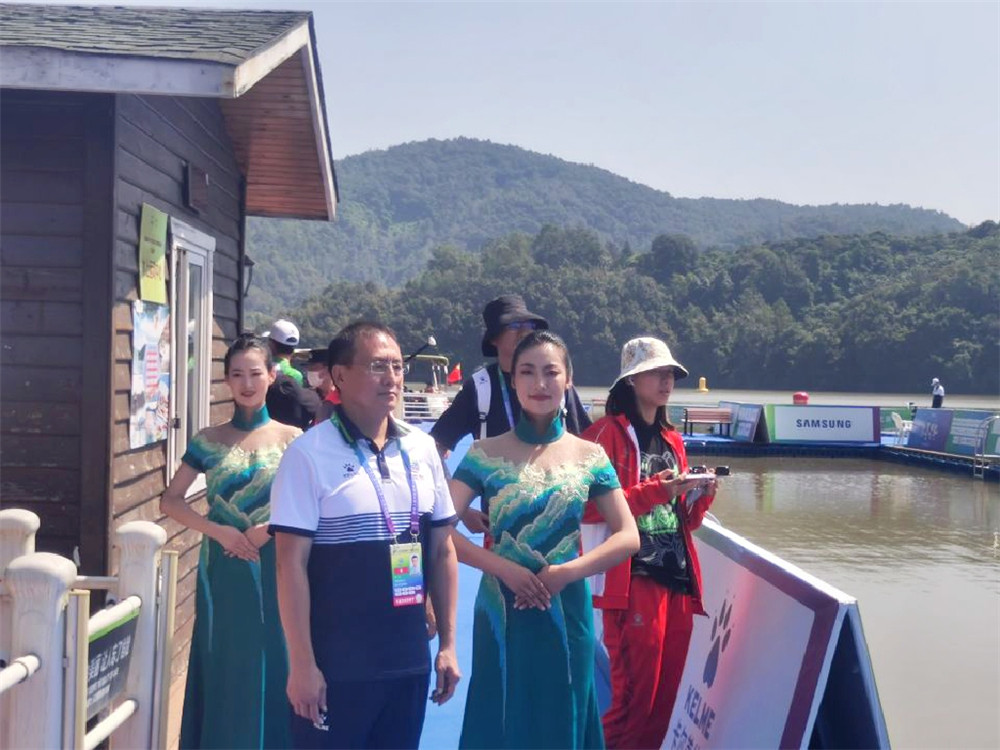 第十四届全国运动会马拉松游泳项目竞赛于9月12日至13日在安康瀛湖景区公开水域盛大举行,“小秦宝”们正式亮相,为赛事顺利进行提供高质量志愿服务保障。
