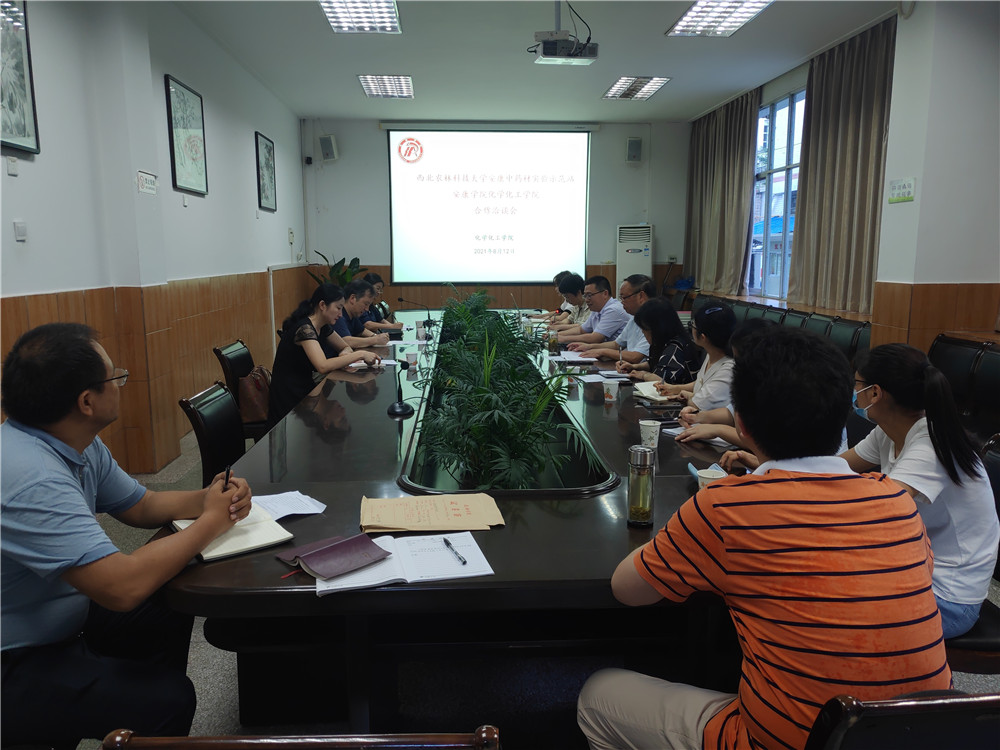余谦介绍了我校发展历程、发展理念、发展定位和发展成就,对西北农林科技大学长期以来对我校学科专业建设、师资队伍培养、硕士点建设等方面给予的帮助表示感谢。他指出安康地处秦巴山区,地理区位和气候条件独特,中药材资源丰富,被誉为“秦巴药库”,是重要的药材集散地,中医药文化深厚,为中医药产业发展提供了优越条件;在地方历届政府的重视支持下,中医药产业已经发展成为区域支柱产业。他强调,化工学院牵头会同有关学院要抓住机遇、积极作为,成为西农安康中药材实验示范站“一站多点”模式中重要的组成部分,在人才培养、科技创新、教师发展、社会服务等方面深入合作,及时改进合作机制,不断取得成效成果,同时为安康中医药产业发展做出突出贡献。