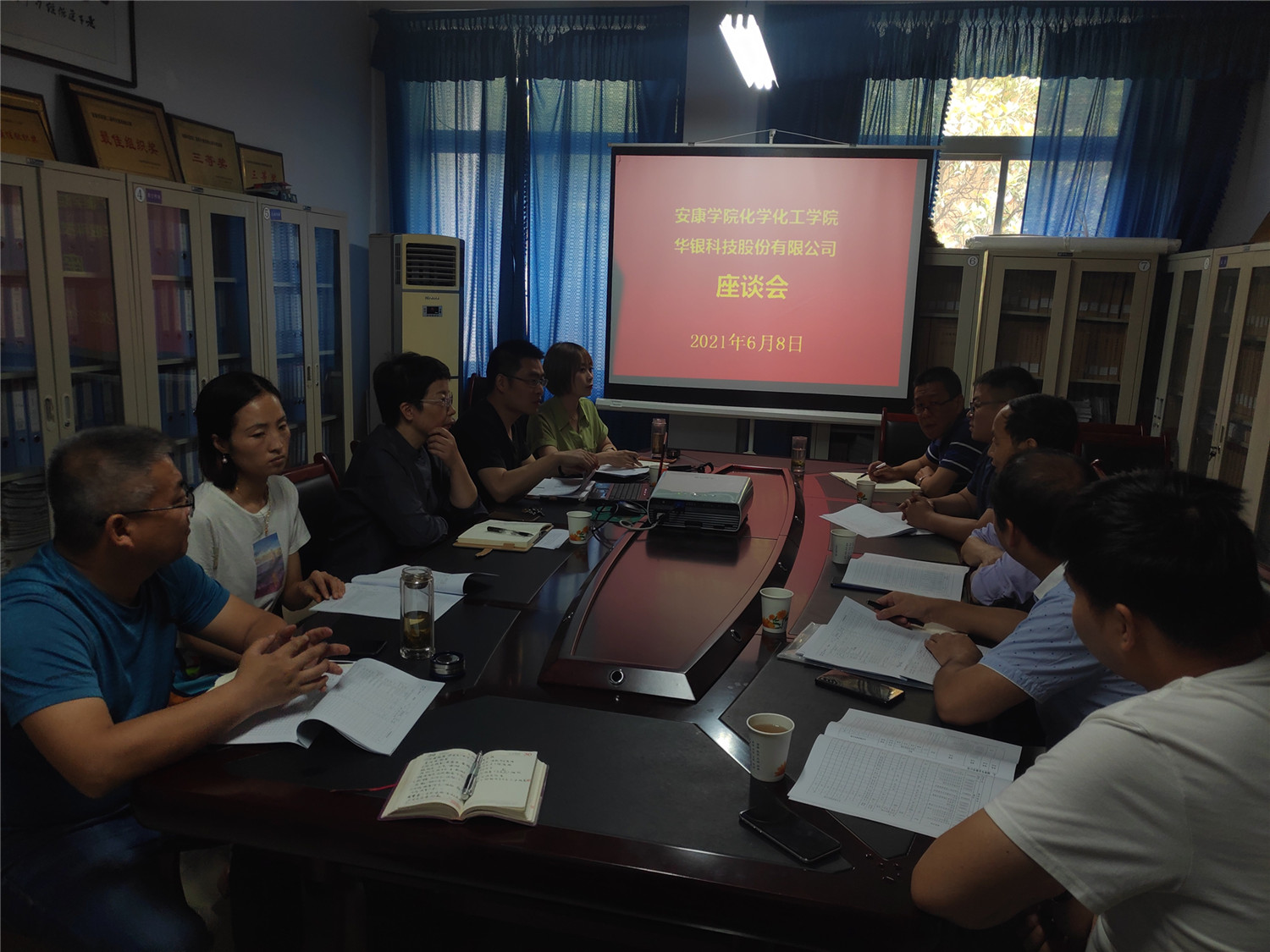 6月8日上午,陕西华银科技有限公司董事长助理蔡玮一行4人来Beat365官网就科研项目合作、人才培养和引进等方面进行协商,并达成合作协议。会议由柳林院长主持。