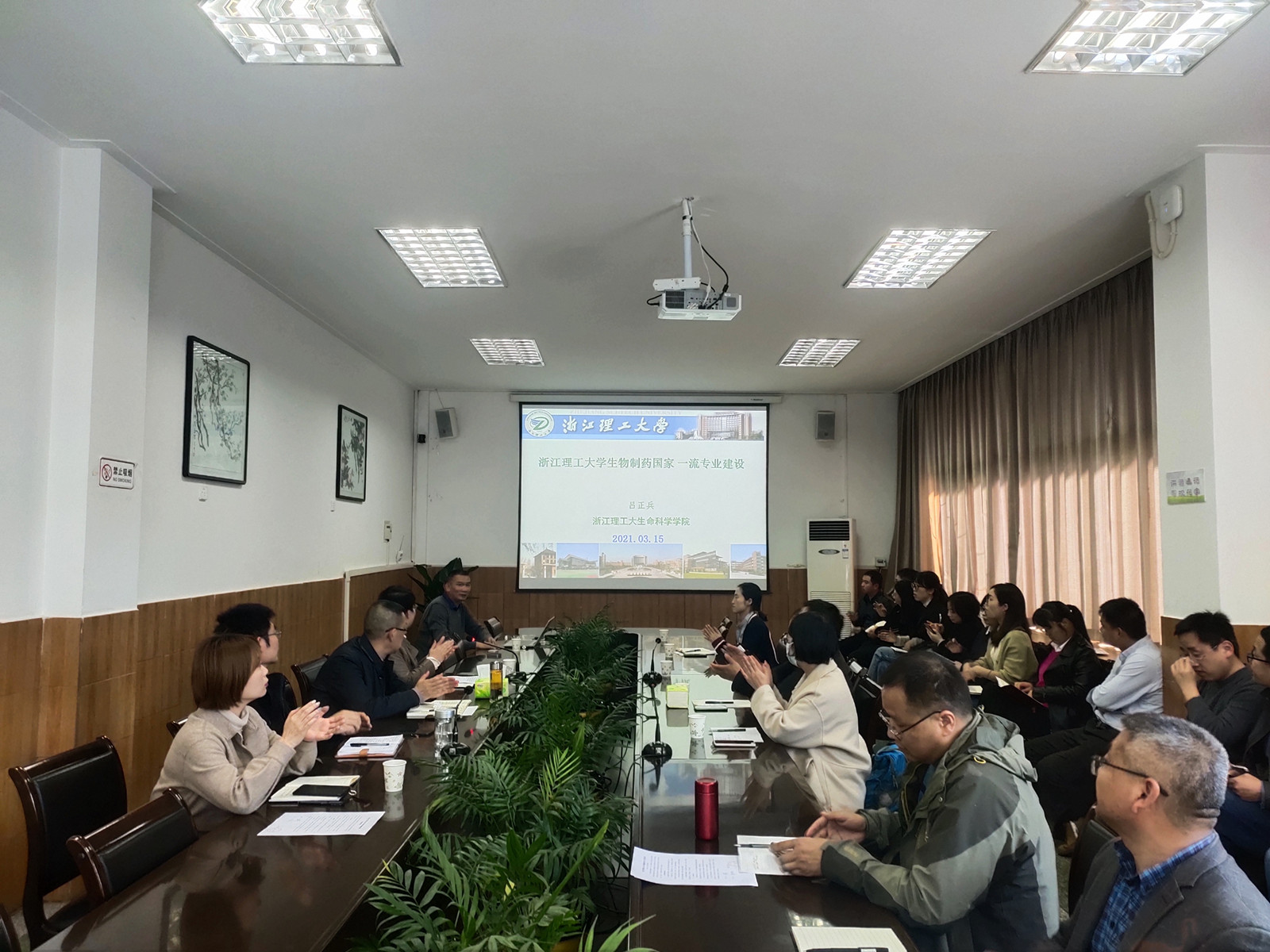 3月15日下午,Beat365官网举行专业建设专题报告会。会议特邀浙江理工大学生命科学与医药学院院长梁宗锁教授、生物制药学系系主任吕正兵教授作专题报告。化工院王永东书记、袁光辉副院长、黄婷副院长及全体教师参加了此次会议,会议由柳林院长主持。