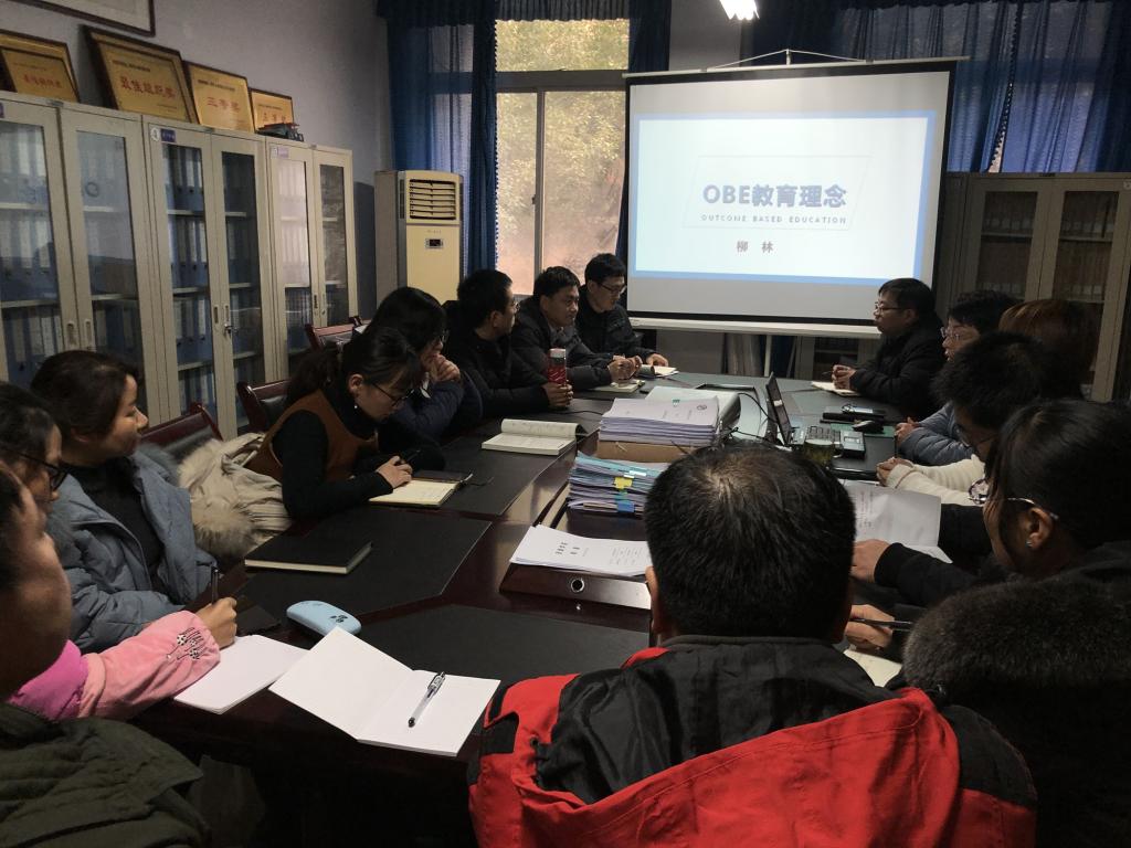 12月15日下午,Beat365官网在1325召开《成果导向(OBE)教育理念》学习会,本次会议由院长柳林主讲,院领导班子及无课教师参加。
