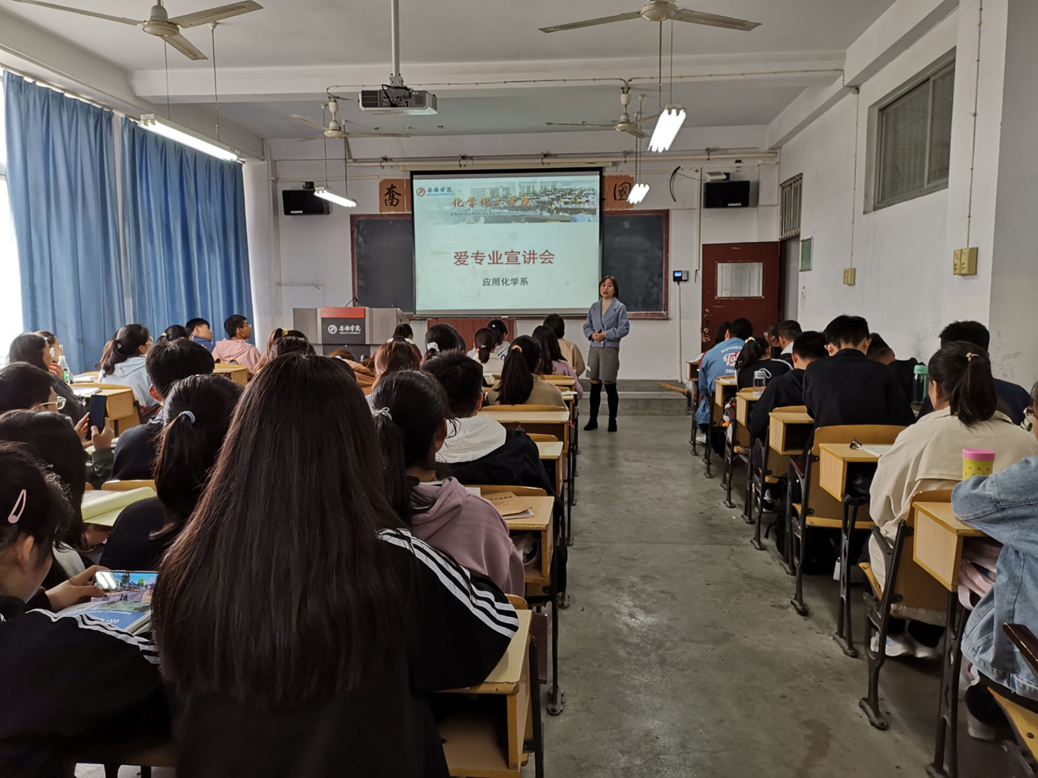 为了使应用化学专业2020级新生尽快了解专业方向、核心课程设置、专业研究领域前沿与应用及对国家发展的重要性,同时引导学生树立正确的专业观和学习观,激发学生的“爱专业”情感和探索精神,应化专业负责人黄婷副院长和系主任张继东老师在10月16日为应用化学专业2020级新生开展了“爱专业”宣讲活动。