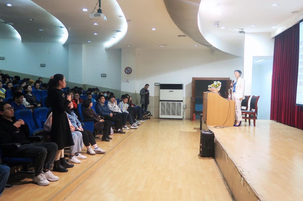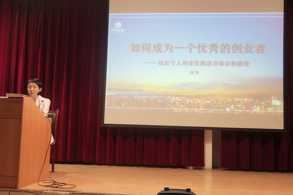 陈芳女士“如何成长为一名优秀的创业者”为主题,首先向同学们讲解了国家和地方政府在大学生创业方面的优惠政策,勉励同学们刻苦学习,为在校创业及毕业后创业奠定艰实基础。随后陈女士结合自身的创业过程,从要有改变现状的志向、要有发现商机的眼光、要有吃苦耐劳的作风、要有诚实守信的品格、要有敢于挑战的勇气、要有持之以恒的决心、要始终常怀感恩之心等七个方面讲授了如何成长为一名优秀的创业者,引起了同学们浓厚的兴趣。互动环节中同学们踊跃发言,气氛活跃。