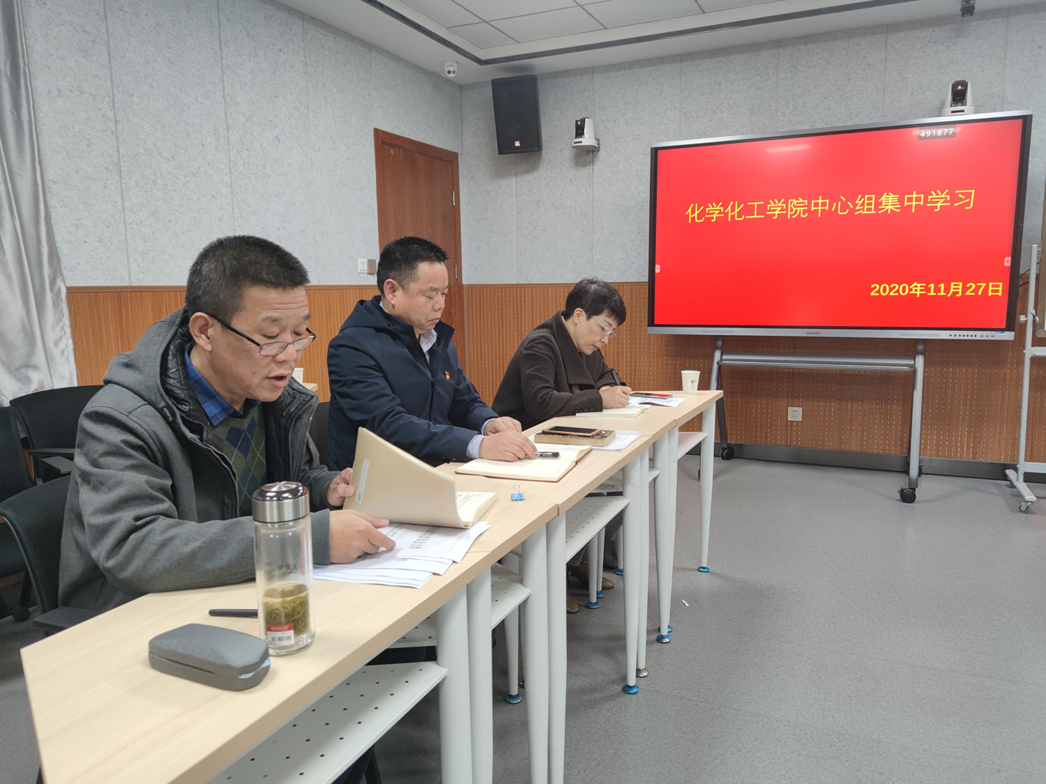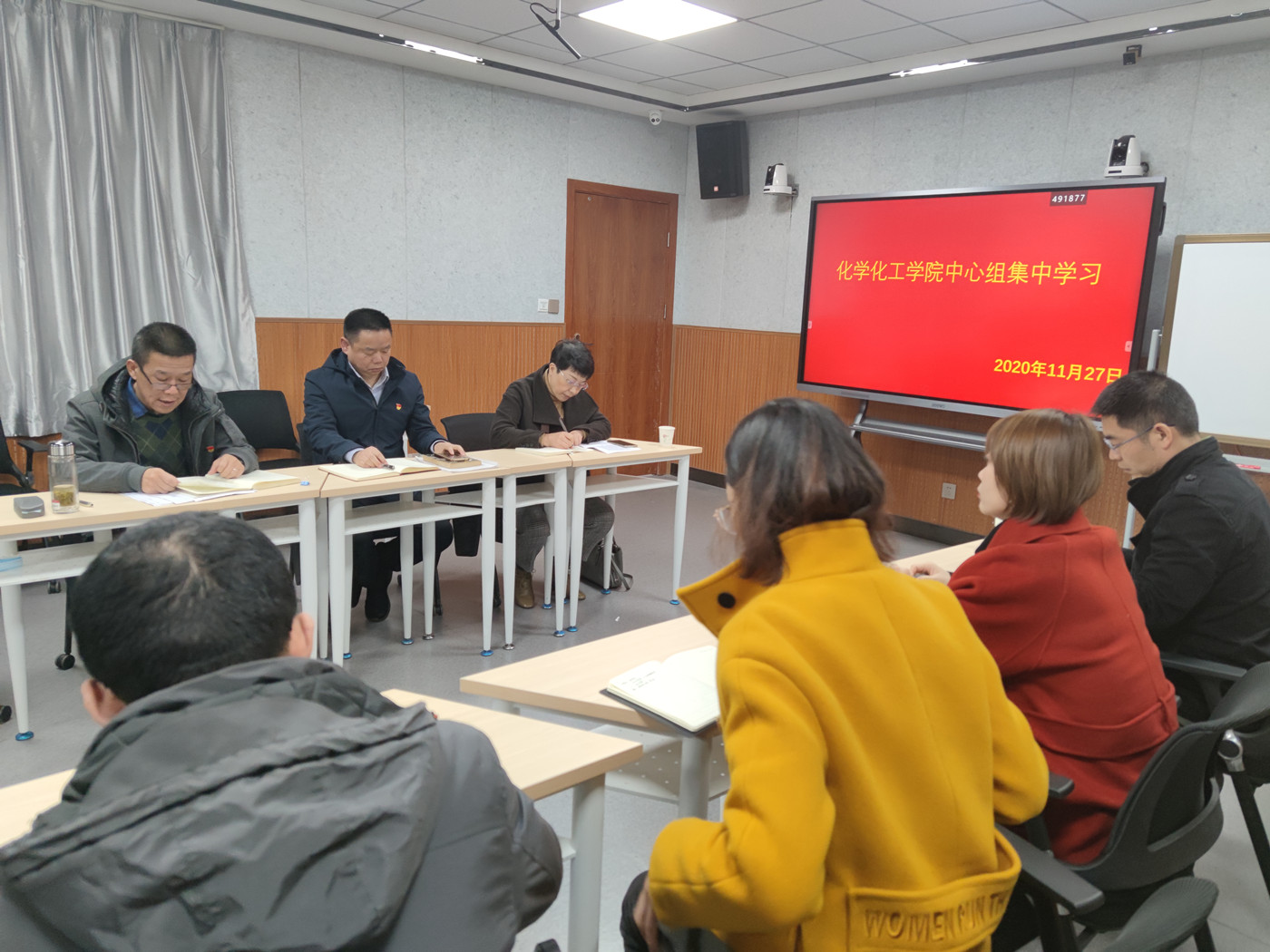 11月27日,化学化工学院在4号楼201会议室召开理论中心组集体学习会议,学校纪委书记安永强旁听并指导了学习会。