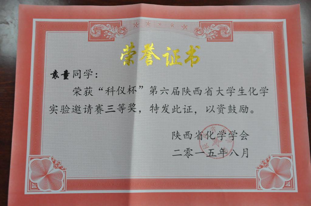 此次邀请赛共有来自西北大学、陕西师范大学等全省20个本科院校的代表队共60多名学生参加。竞赛分为实验知识笔试、实验操作竞赛两个环节。在我校教务处和我系全体教职工的共同努力下,经过校内实验竞赛、暑期培训及选拔,我校代表队3名同学凭借长期积累的专业基础和认真负责的科学态度,经过两天紧张的角逐,党鑫获得了个人二等奖,孙浩楠和袁童获得了个人三等奖的好成绩。