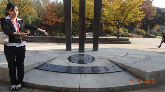 来到首尔大学,我们同当地大学生也谈论了许多话题,他们都十分热情。耐心的为我们讲解着每一个院系的名称,一些名人雕像背后的故事。临走时,我们都赠送了他们自己精心准备的礼物,大家都彼此记住了对方,也许这就是友谊吧!