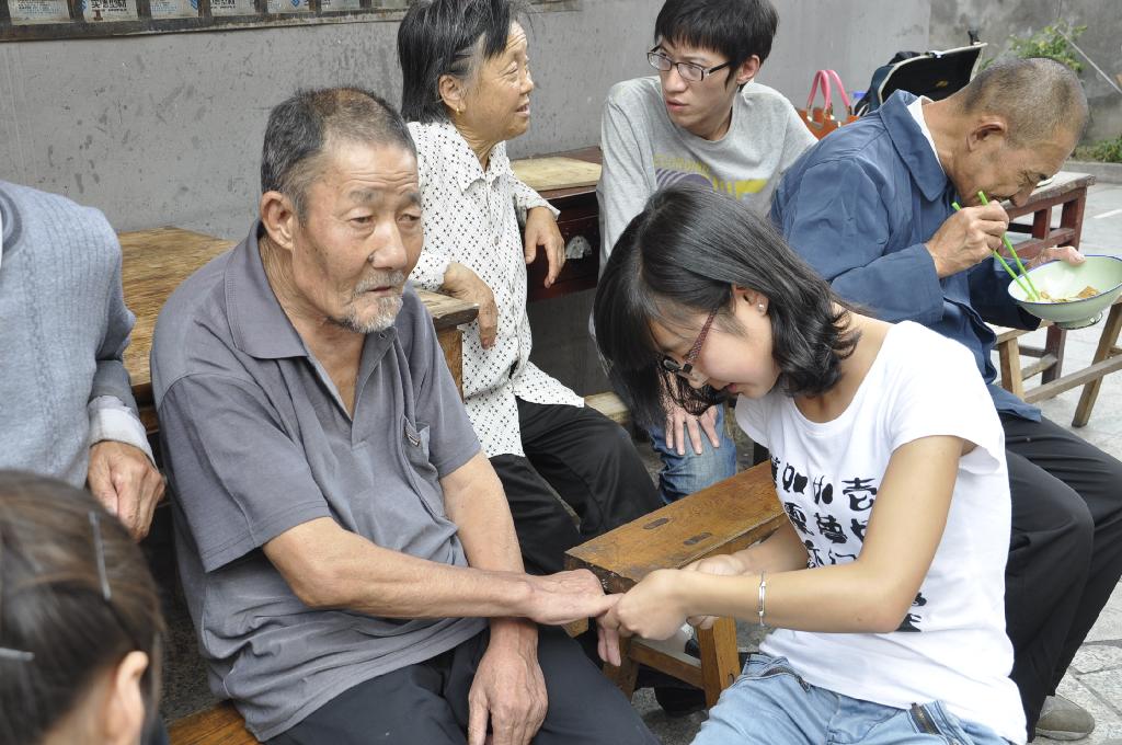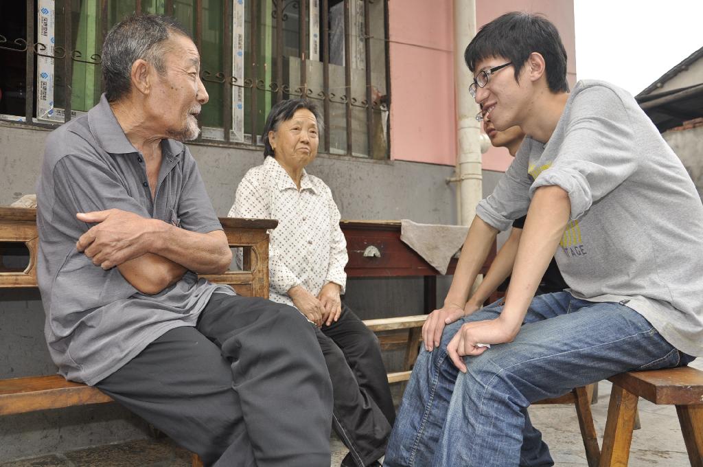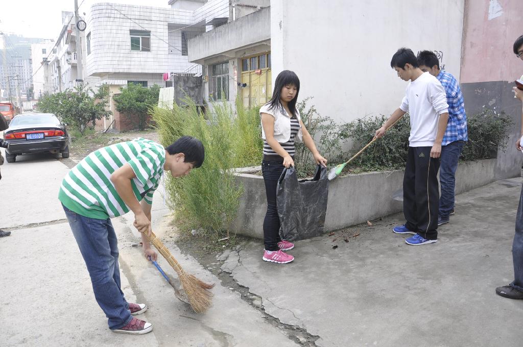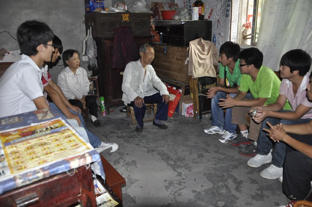 午后的阳光带着快乐的气息散满整个院子,随处都是学生劳动的身影,打扫卫生的、择菜的、洗菜的、整理屋子的、陪老人解闷说谈的,其乐融融,不亦乐乎。在这里没有了大学生,只有老人和孩子。没有校律学规,只有深厚的情谊。午饭过后,老人与学生坐在一起谈论着生活,谈论着心情。一位老人拉着学生干部杨小发的手激动地说:“二十多年了,有你们这群孩子的陪伴,我们从未感觉到孤单,真的很亲切。”