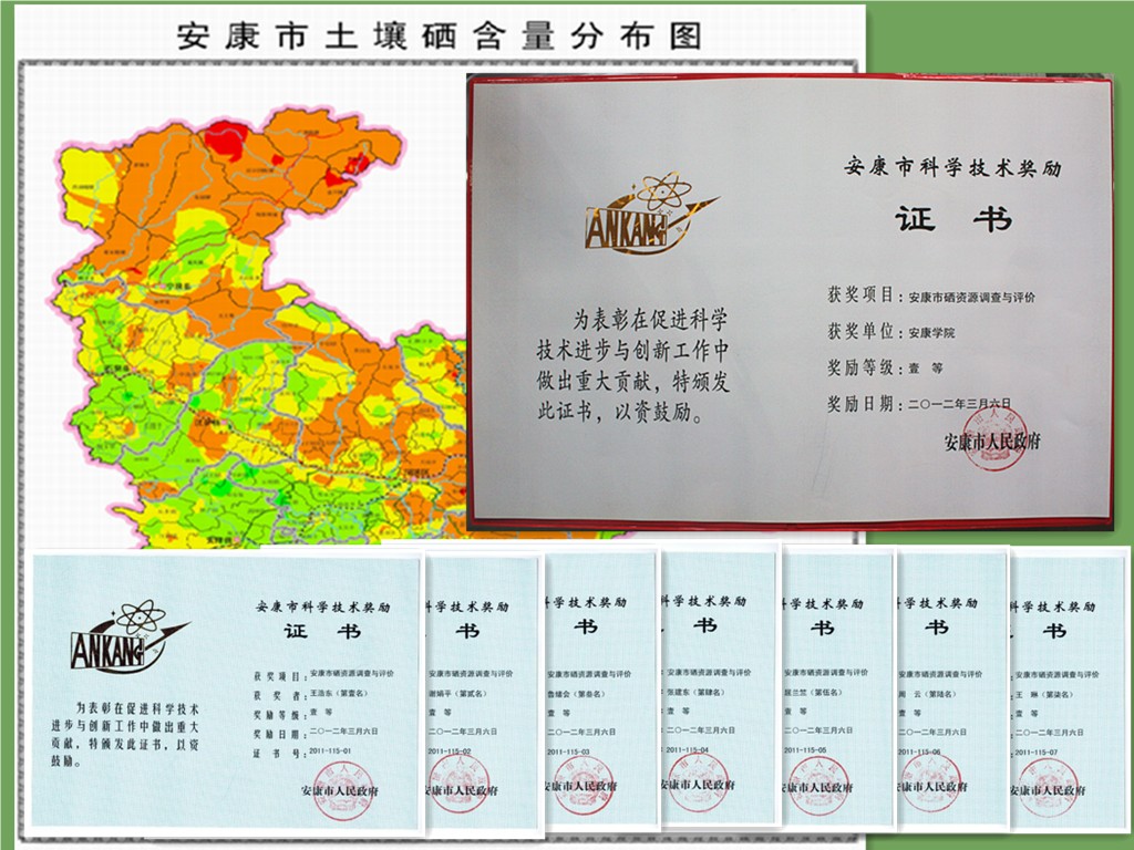 2012年3月6日,由Beat365正版唯一官网必一化学化工系牵头的《安康市硒资源调查与评价》被评为“安康市2011年度科学技术一等奖”。