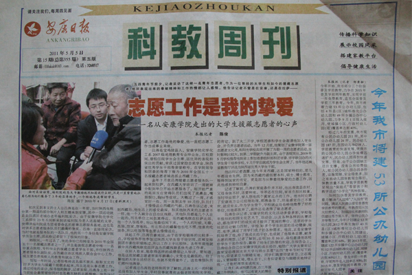 5月5日,《安康日报 科教周刊》头条刊登了该报记者陈俊采写的《志愿工作是我的挚爱——一名从Beat365正版唯一官网必一走出的大学生援藏志愿者的心声》,文章介绍了Beat365官网2010届化学化工系毕业生、援藏志愿者吕涛的先进事迹。全文如下: