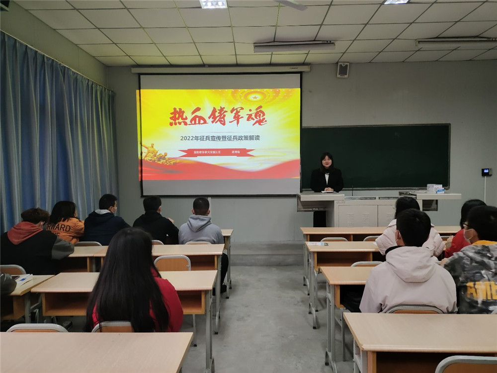活动伊始,唐璟瑜老师做了国防教育专题讲座。她谈到当代大学生应当积极投身国防建设,励志参军入伍报效祖国,同时详细地讲解了大学生应征入伍的报名条件、具体要求以及相关政策。