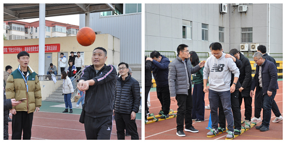 砥砺奋进跟党走 Beat365官网党总支书记王永东介绍了本次主题党日活动的目的,本次活动是为进一步加强党史学习教育的形式,引导全体教师在党史学习教育中坚守育人使命,在运动拼搏中坚定理想信念。学生党员工作站副站长李念晨同学宣读本次活动的规则,本次活动以各系的教师参赛,学生当观众为老师们加油助威。活动有跳绳、三人两足、垫排球、运球接力、大脚板、拔河大比拼,每完成一个项目要进行党史问答,党史问答通过的小组方可进入下一个项目,比赛成绩以计时为准,用时最短的小组获胜。初冬的操场阳光明媚,景色优美。大家积极合作,紧密配合,享受着运动带来的快乐,活动在轻松愉悦的氛围中进行。