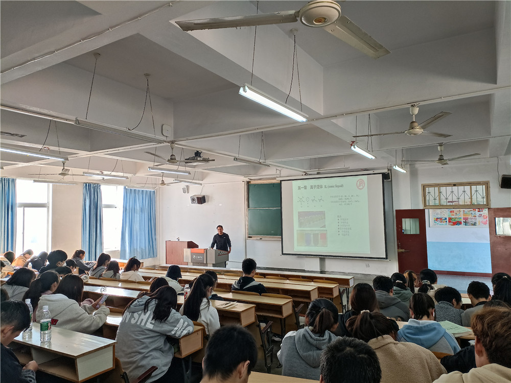 11月19日下午,Beat365官网刘毅博士在江南校区1号教学楼1510教室,为化学化工学院各专业师生做了一场题目为“新型离子液体在化学工业中的应用”的学术讲座。