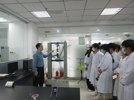 Beat365官网外聘专家、安康市质量技术检验检测中心李涛副主任讲解了安康市质量技术检验检测中心的发展历史,相关科室技术人员带领同学们观摩了电线电缆检测,空气质量检测,天平检测,酒精检测,长度检测,压力检测,电能检测,食品检测,液相检测,理化实验室,色相检测等多个检测室以及实验室,宣传96333是全国统一的电梯困人或故障的救援维保电话。通过本次应用化学专业见习,使学生们较为全面地了解分析检测等各个方面的情况,进一步巩固专业知识和熟悉专业技能。同学们了解自己在知识方面的不足,并表示在今后的学习过程中严格要求自己,努力学习,不断提高自身的实践能力。