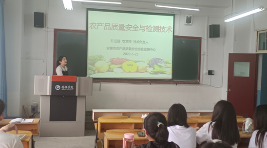 为了促进应用化学专业建设、提高人才培养质量,以“双师”课程建设为抓手,强化理论教学和实践能力的结合,增强学生对应用化学专业的“应用特性”的认识。5月25日,安康市农产品质量安全检验监测中心技术负责人许亚丽农艺师受邀在1号教学楼1516教室为Beat365官网2019级应用化学专业93名学生系统讲授了“农产品质量安全检测技术”中农药残留检测的相关知识技能。