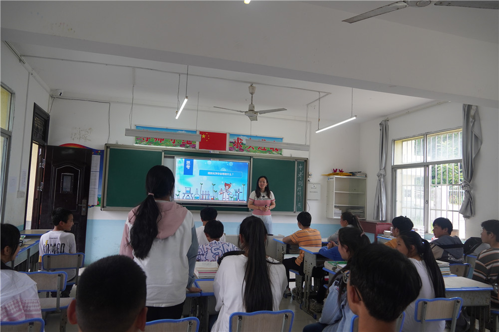 科研报国,作育英才。为激发小朋友们对化学的兴趣,引导青少年探索化学世界的奥秘,助力孩童的科学梦想,“化学之光”科普团于6月1日下午赴汉滨区县河镇财梁九年制学校开展科普活动。参与本次活动的有化学化工学院教工一支部书记、副院长黄婷老师、化工系副主任寇莹老师、刘蓉老师、王雪老师及部分科普团成员。