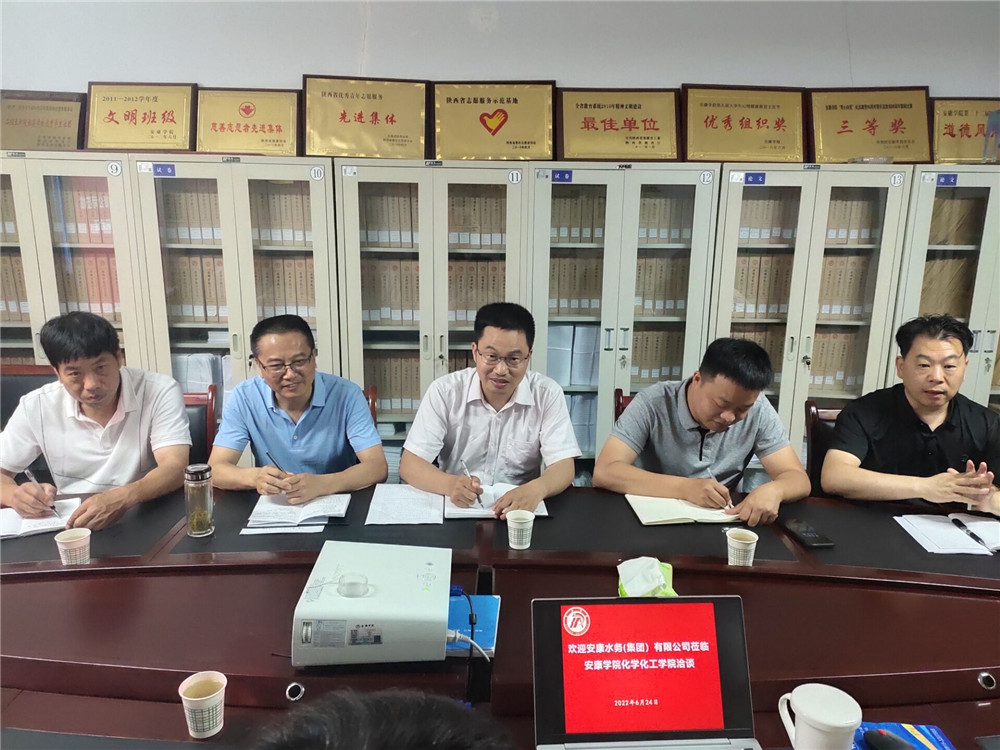 6月24日下午,安康水务(集团)有限公司一行8人来Beat365官网洽谈校企合作事宜。柳林院长、黄婷副院长、应用化学系教师参与此次洽谈。