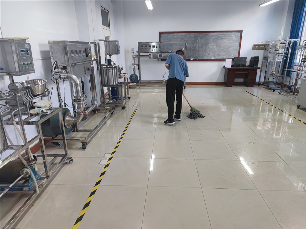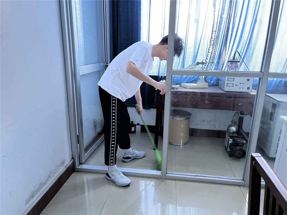 活动期间,2020级所有同学在组长的带领下井然有序地协助实验室管理老师对实验室进行打扫。打扫过程中,大家分工明确,各执其责,从实验台面到实验仪器;从地面到卫生死角,都能打扫的一丝不苟、干净整洁,而且在完成自己任务的同时也不忘互帮互助,在团结协作中认真完成实验室打扫工作。