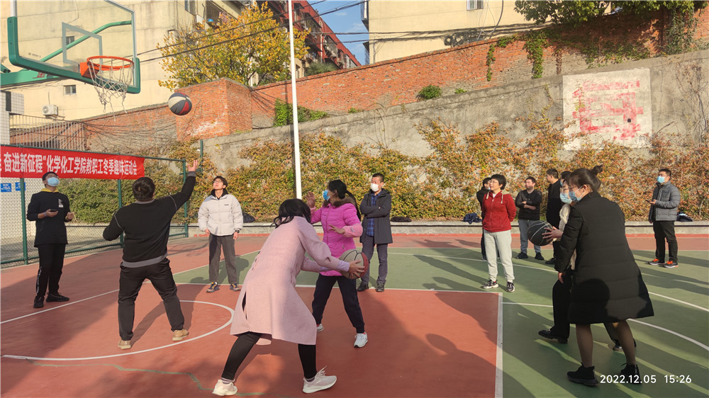 11月5日下午,冬季暖阳,化学化工学院分会在党总支书记王永东,院长柳林的带领下,全体教职工在南区体育馆举行趣味运动会。比赛项目有踢毽子、跳绳比赛、定点投篮比赛和乒乓球运球跑。