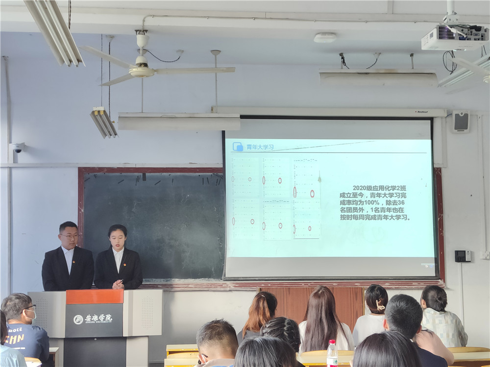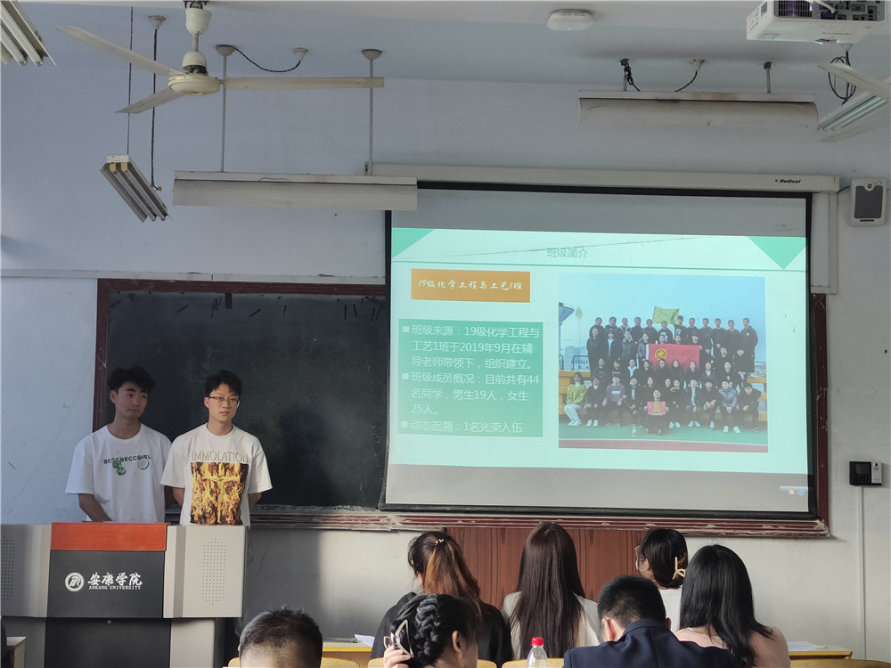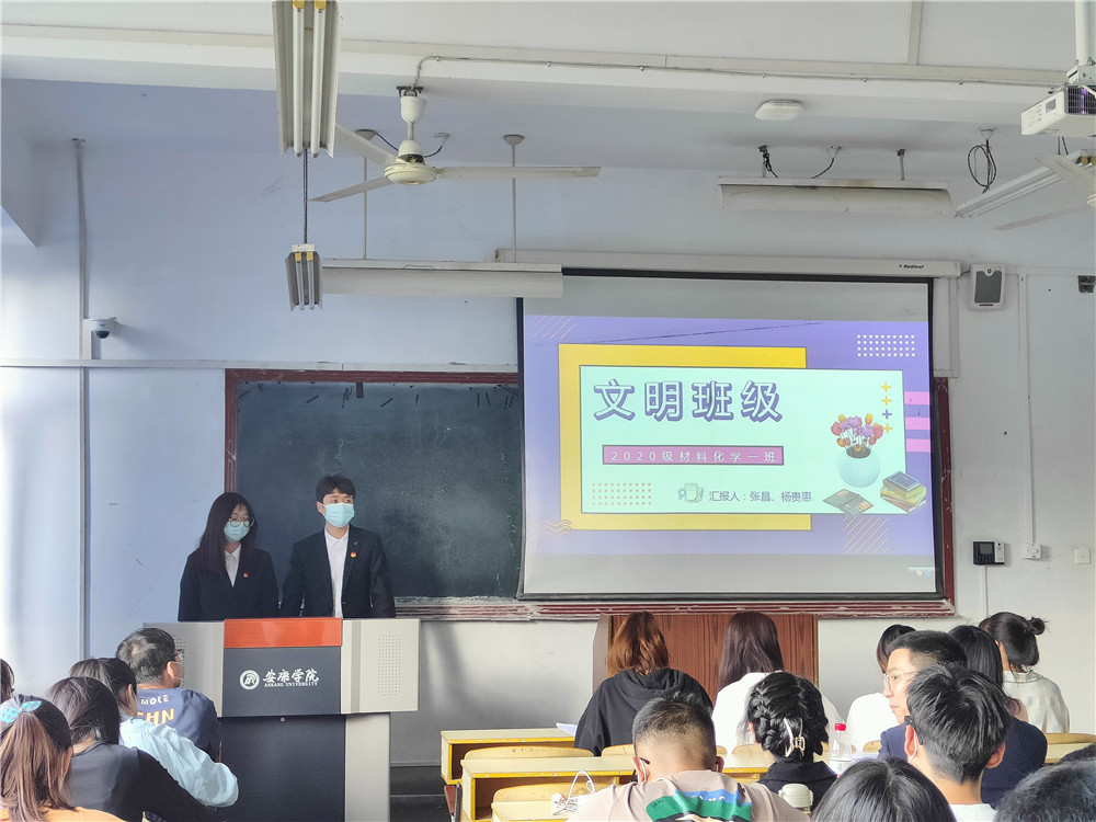 为促进Beat365官网学生树立良好的校风、学风,培养学生的人文素养和集体观念,增强班集体的凝聚力、向心力和创造力,展现大学生的良好精神风貌,根据校学工部《关于开展2021—2022学年度“文明班级”、“文明宿舍”评选活动的通知》要求。2022年4月7日下午,化学化工学院在1219教室开展文明班级答辩活动。学院辅导员老师于正豪、许珂瑶、成沛锐以及学生党支部党员代表作为评委参加。