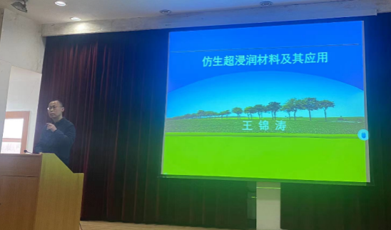 3月24日下午,Beat365官网王锦涛博士做了题为《仿生超浸润材料及其应用》的学术讲座。化工学院部分师生参加了此次讲座,讲座在江南校区1号教学楼六楼报告厅举行。