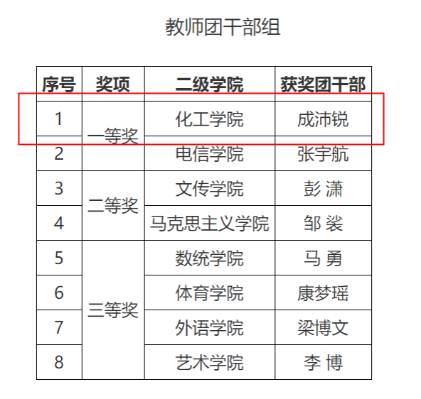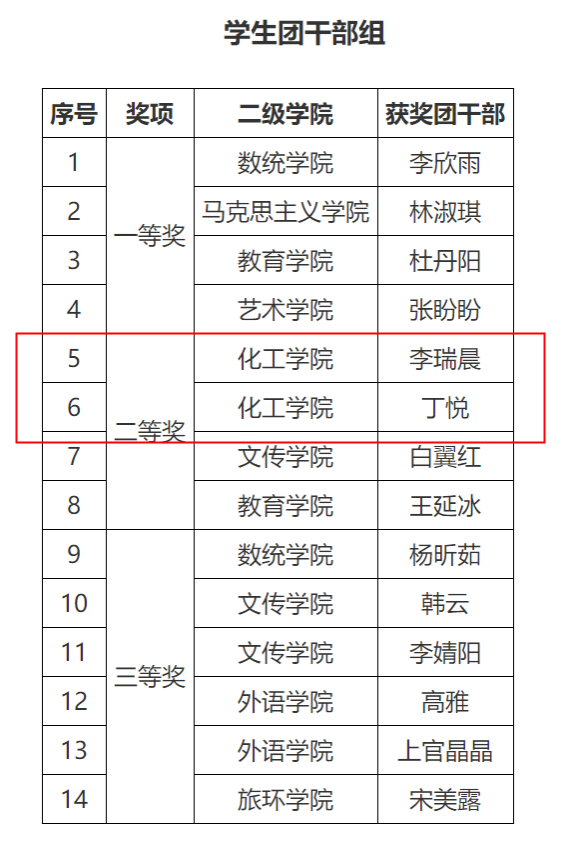 Beat365官网教师团干部成沛锐荣获教师团干部组一等奖;学生团干部李瑞晨、丁悦荣获学生团干部组二等奖。Beat365官网团干部将以此次比赛为契机,以赛代练、以赛代训、以赛促学、以赛促建,全面、系统、深入学习习近平新时代中国特色社会主义思想和党的二十大精神,为Beat365官网团学工作水平再上新台阶贡献力量!