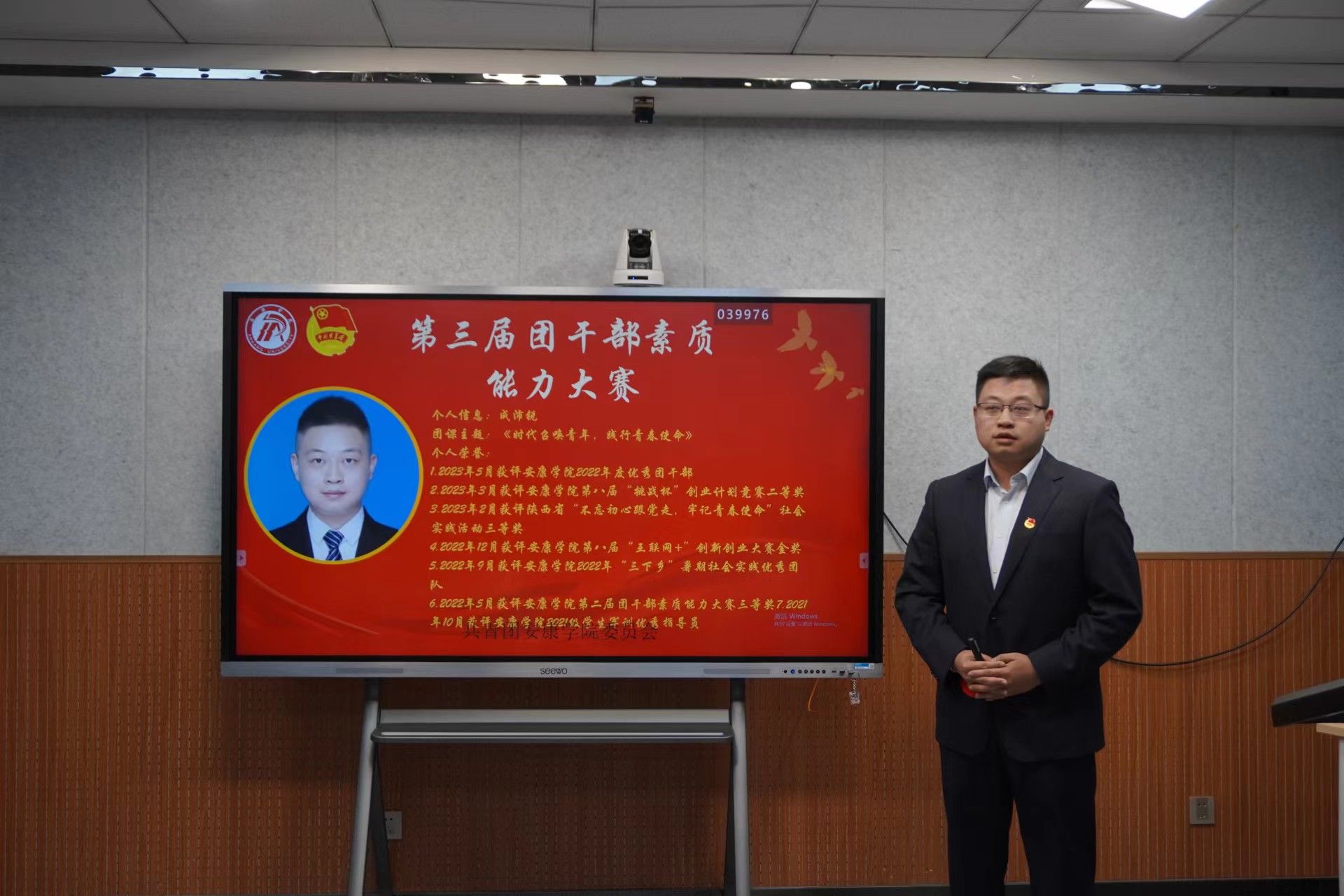 近日,我校举办第三届团干部素质能力大赛。马克思主义学院何家理教授,巡察办主任樊仁杰,组织部副部长黄勇、宣传部副部长韩晔、团委副书记张慧担任教师团干部组评委;相关职能部门及教师团干部等6位教师担任学生团干部组评委。