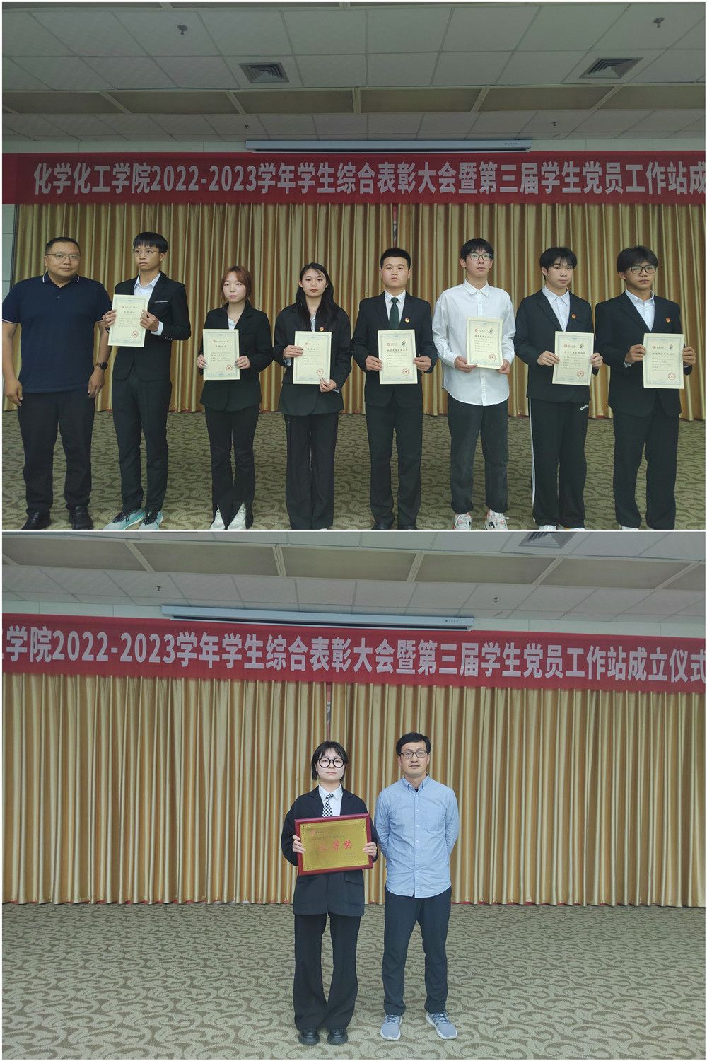 5月16日下午,化学化工学院在江南校区图书馆报告厅举行2022-2023学年学生综合表彰大会暨第三届学生党员工作站成立仪式。学院党总支书记王永东、院长柳林,副院长袁光辉、副院长黄婷出席表彰大会,学工办主任、系主任、全体辅导员及各班级学生代表参加了表彰大会。大会由学工办主任王瑜主持。