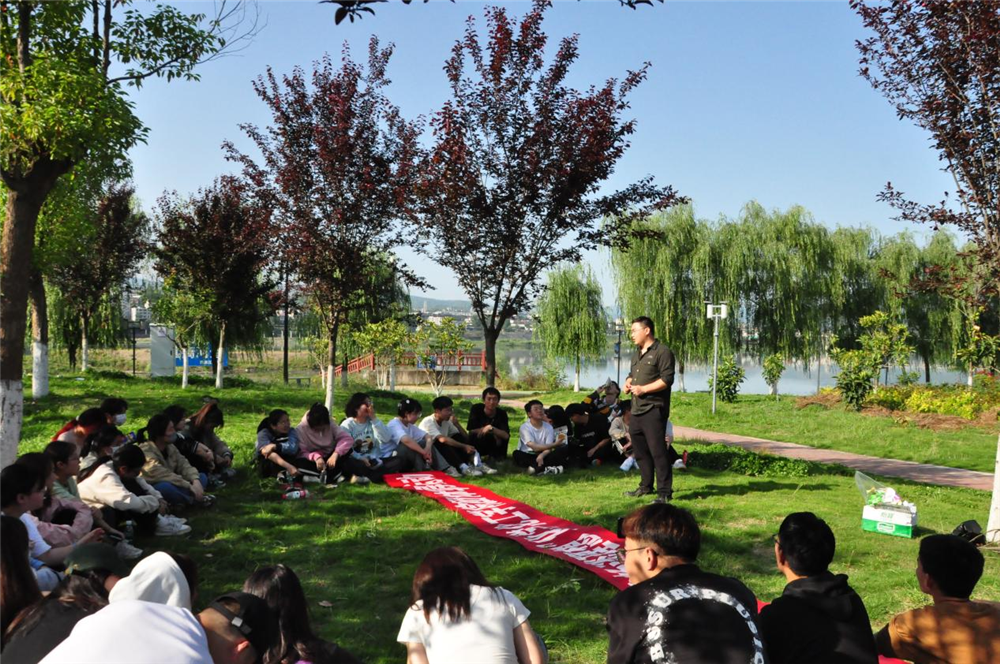 “最美人间五月天,一派生机入眼帘”。为增强学生的的团体凝聚力,帮助学生提高自信心,进一步提升我校心理育人工作质量,优化学生积极心理素养。2023年5月24日下午,辅导员于正豪老师带领2021级、2022级共76名学生,在汉江江滩体育公园开展“感受自然,倾听心灵,畅谈理想”团体辅导活动。