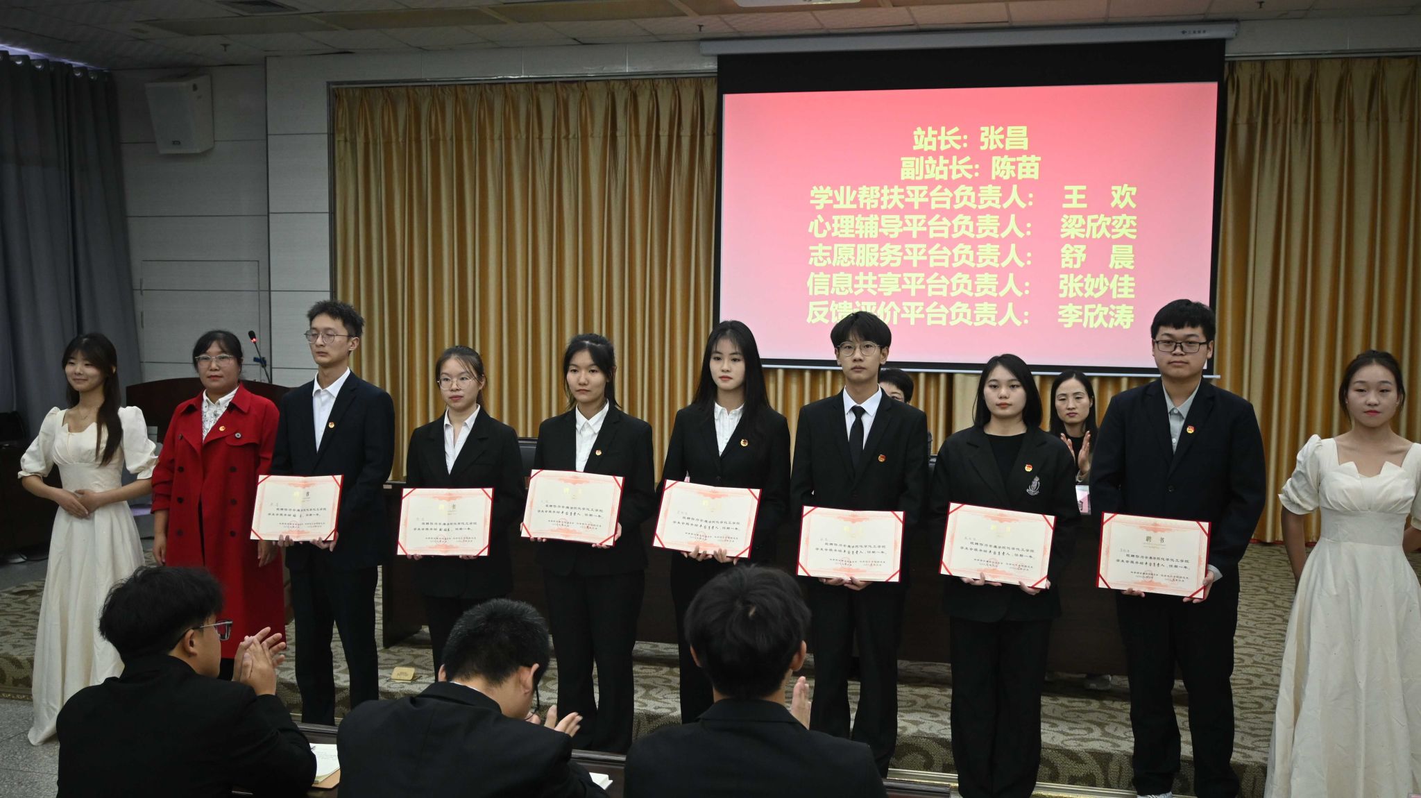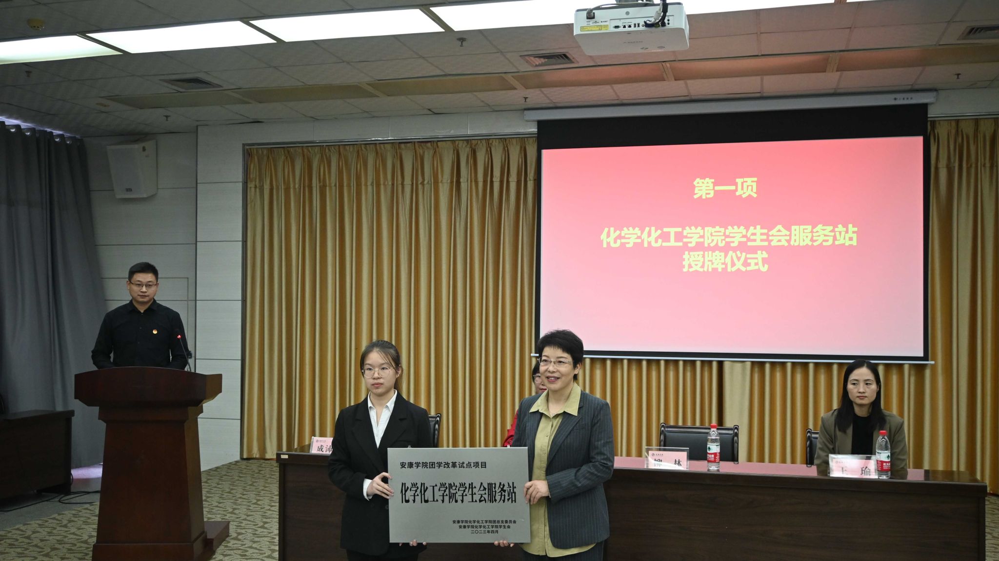 沙薇为化学化工学院学生会服务站学生干部颁发聘书。
