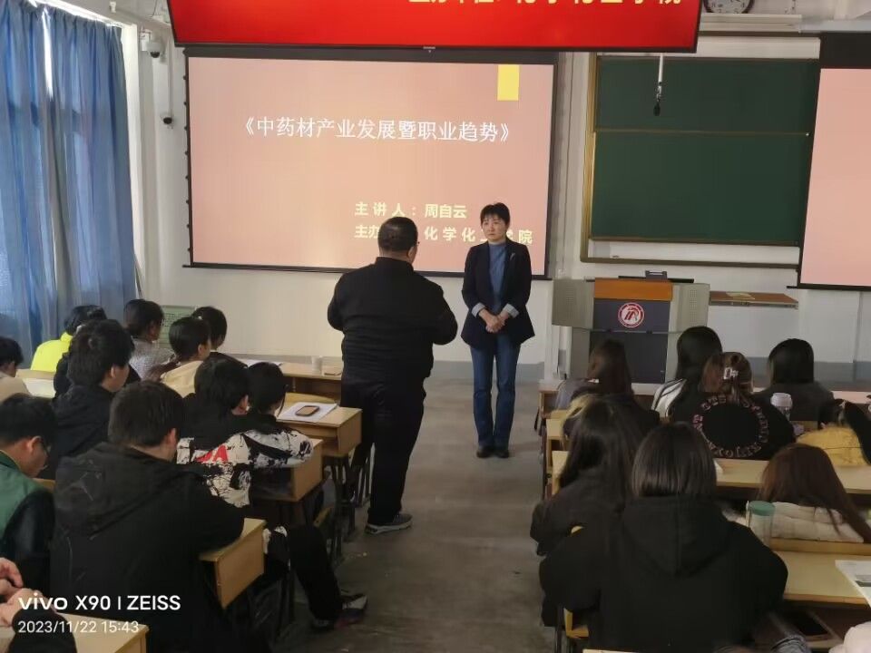 为了促进制药工程专业建设、提高人才培养质量、增强学生对专业的认知,做好职业规划。2023年11月22日下午,Beat365官网特别邀请了西北农林科技大学、安康市西北农林中药材试验示范站站长周自云博士,为Beat365官网制药工程专业学生和部分教师作了题为“中药材产业发展暨职业趋势”的讲座。