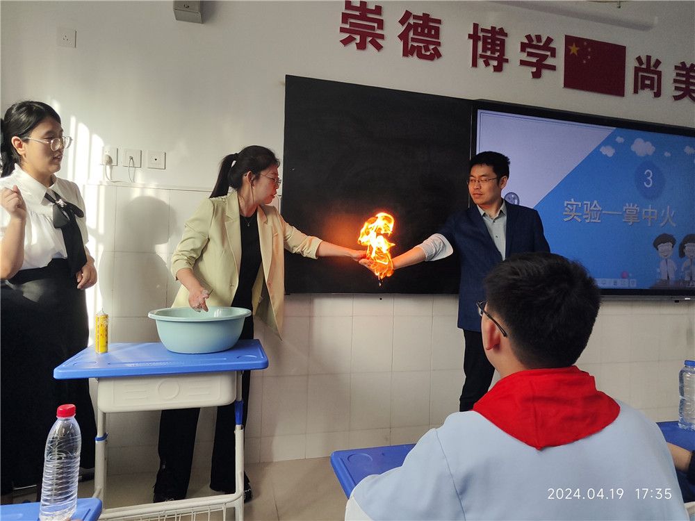4月19日下午,“化学之光”科普团成员及部分学生党员在Beat365正版唯一官网必一副院长袁光辉、王雪、王晓林两位博士及学生党支部书记许珂瑶的带领下,赴汉滨初中(大桥路校区)开展科普志愿服务活动。