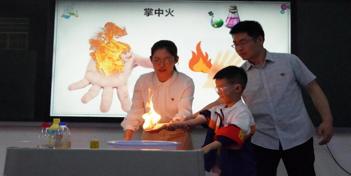活动伊始,王雪老师用“你印象中的化学家是什么样子的?”、“化学有什么用?”等问题引导学生进行思考,让大家对化学有了初步的了解。随后,通过“掌中火”小实验激发大家的兴趣,带动全场氛围,吸引了小朋友们的阵阵欢呼声,大家不仅亲眼见证了化学的神奇魅力,还通过动手操作安全简单的小实验,锻炼了动手能力,激发了孩子们的好奇心和探求欲。