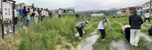 活动开始前,带队老师向同学们详细讲解了劳动实践活动内容及安全注意事项。在到达西农中药材试验示范站药材种植基地后,西农中药材试验示范站负责人首先向同学们耐心讲解了中药材的辨别与生长习性等知识。随后,同学们在老师的有效组织下,以小组为单位划分地块,责任到人,挥动锄头积极参加丹参药材种植园的除草劳动,大家不怕脏、不怕累、互相帮助、互相配合,尽管汗水浸透了衣衫,泥土沾满了鞋子,但在田间地头却回荡着欢声笑语,经过几十分钟的努力,同学们将种植地内的杂草进行了彻底清理,有效改善了药材的生长环境。