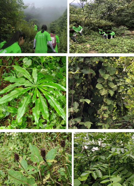 团队调研了洪山镇兴隆社区、长安村、石狮村、天池村等多个社区村,记录了包括商陆、荨麻、千里光、三叶木通、五叶木通、茜草、艾草、金银花等多种秦巴山区常见的药用植物。随着实践活动的进行,团队还发现了诸如一把伞天南星、五味子、五倍子、夏枯草、杠板归等诸多不多见的药用植物。在实践过程中,郭老师就药用植物的鉴别特征、种属类别、药用部位、药用价值、生长环境等情况进行了较为细致的讲解。团队成员认真记录药用植物的相关信息,在为期三天的实践中团队共计调研发现药用植物100余种。