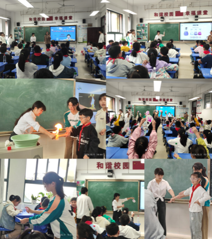 活动伊始,肖书记向同学们介绍了“化学之光”科普团的团队成员及本次活动内容和要求。接着,孟天姣老师从“什么是化学”“生活中的化学”以及“化学的用途”三个方面,为学生们生动地讲解了生活中随处可见的化学知识。接下来,团队为同学们设计了“掌中火”“神奇的色彩”和“无中生有”三个体验实验,带领学生们亲自动手,感受化学的神奇变化。在每个实验结束后,孟老师还详细讲解了背后的科学原理,让孩子们在亲身体验中掌握知识,进一步加深对化学的理解。