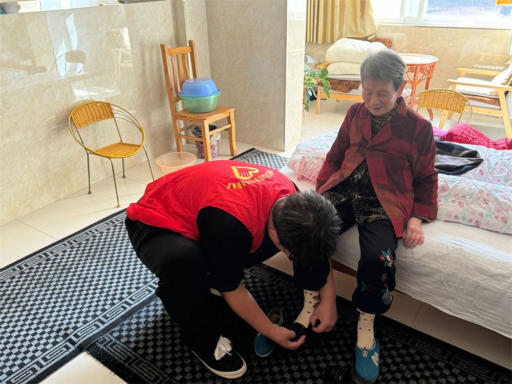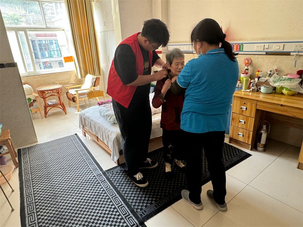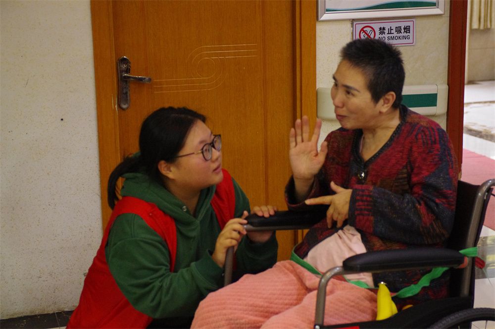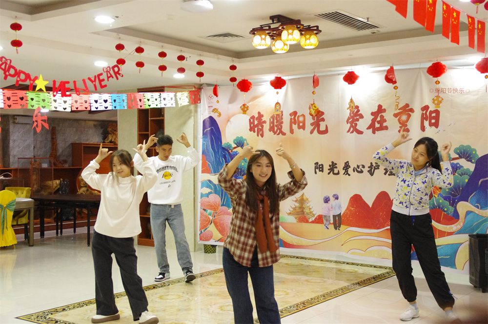志愿者们的到来给平日清净的敬老院带来阵阵欢笑声,院内洋溢着温馨、祥和的气氛。他们热情地问候老人,为老人送上诚挚的节日祝福。志愿者们有的陪老人聊天,询问其身体和生活状况;有的为老人捏肩捶背,做些力所能及的事情;有的则在一旁进行节目排练。老人们也一一询问志愿者们所学的专业以及未来的职业发展,希望同学们年少应有为,为国家、为社会作出更大的贡献。