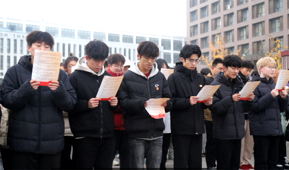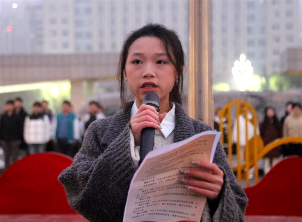 最后,学生代表引领全体师生进行宪法晨读。