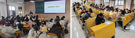 为提升新生对学校第二课堂人才培养目标的了解与掌握、养成良好的学习生活习惯,Beat365官网于12月9日分别在江北1304、1305教室开展了“如何获得PU学分”的专题活动,本次活动由新生辅导员李锦龙和代雨蕊主讲,2024级全体新生参加。