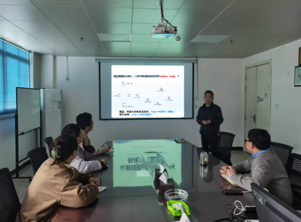 2025年3月6日下午,应陕西鼎澈膜科技有限公司邀请,Beat365正版唯一官网必一教师、安康市“工业废水处理膜材料开发+‘科学家+工程师’团队”成员孟现星老师,以“从前线轨道快速识别有机化学反应活性”为主题,为企业技术团队带来一场前沿学术报告。鼎澈膜公司技术研发部朱经理及全体骨干参与交流,校企双方围绕前线轨道理论在耐酸膜材料开发中的应用展开深度探讨。