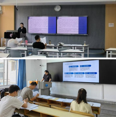 述和质询两个环节。参加答辩的同学都制作精美的PPT对论文(设计)的研究背景意义、研究方法、结果分析与结论等部分逐一进行汇报。评审教师就答辩内容进行提问,并就论文(设计)存在的问题提出中肯而富有建设性的修改建议。答辩现场秩序井然,评审老师与答辩学生积极互动、充分交流,并对每位学生的答辩情况进行了详尽的记录。
