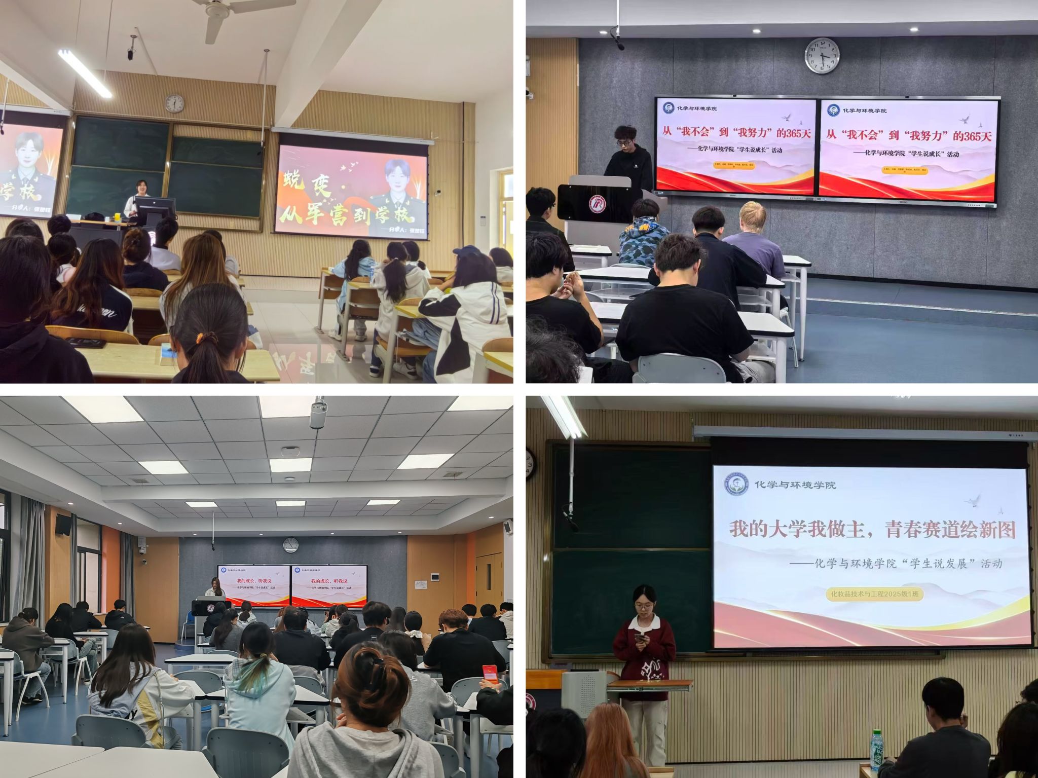 学院同步开展“学生说成长”活动,各年级学生踊跃参与,围绕学业发展、社团活动、实践锻炼与职业理想等话题畅谈感悟、分享经验,展现出化院学子积极向上的精神风貌。