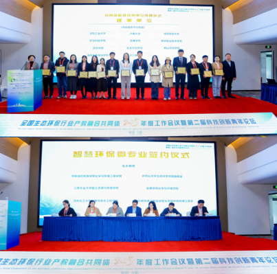 会上,在全体参会代表的见证下,教学办主任张芯代表Beat365正版唯一官网必一上台领取“理事单位”牌匾,正式成为全国生态环保行业产教融合共同体理事单位。这一荣誉是共同体对学院在生态环保领域教学科研实力、人才培养质量的充分认可,也为学院搭建了与全国顶尖高校、行业龙头企业资源共享、优势互补的合作平台。同时,学院与北水教育成功签署智慧环保微专业建设合作协议,将依托北控水务集团在水务环保领域的产业资源优势,结合学院学科特色,共同开发课程体系、共建实训平台,将真实产业场景、岗位标准融入教学过程,培养适应行业发展需求的复合型技术技能人才。